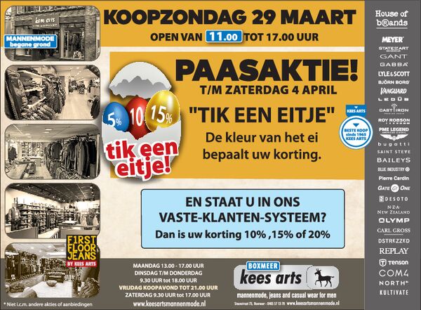 EXTRA KOOPZONDAG OP 29 MAART VAN 11.00 TOT 17.00 UUR